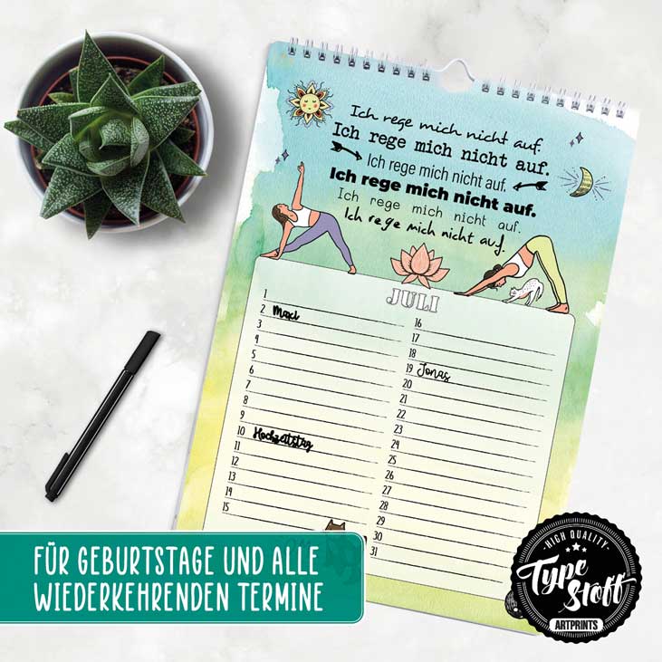 Der Kalender erinnert dich an jeden Geburtstag deiner Lieben. Er ist jahresunabhängig. So brauchst du nie wieder die Geburtstage umzutragen. Gut zu beschriften mit Filz- und Faserstiften.