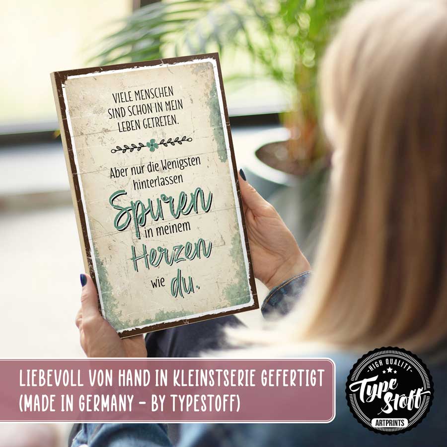 Holzschild mit Spruch - Spuren im Herzen – GH-HS-01549