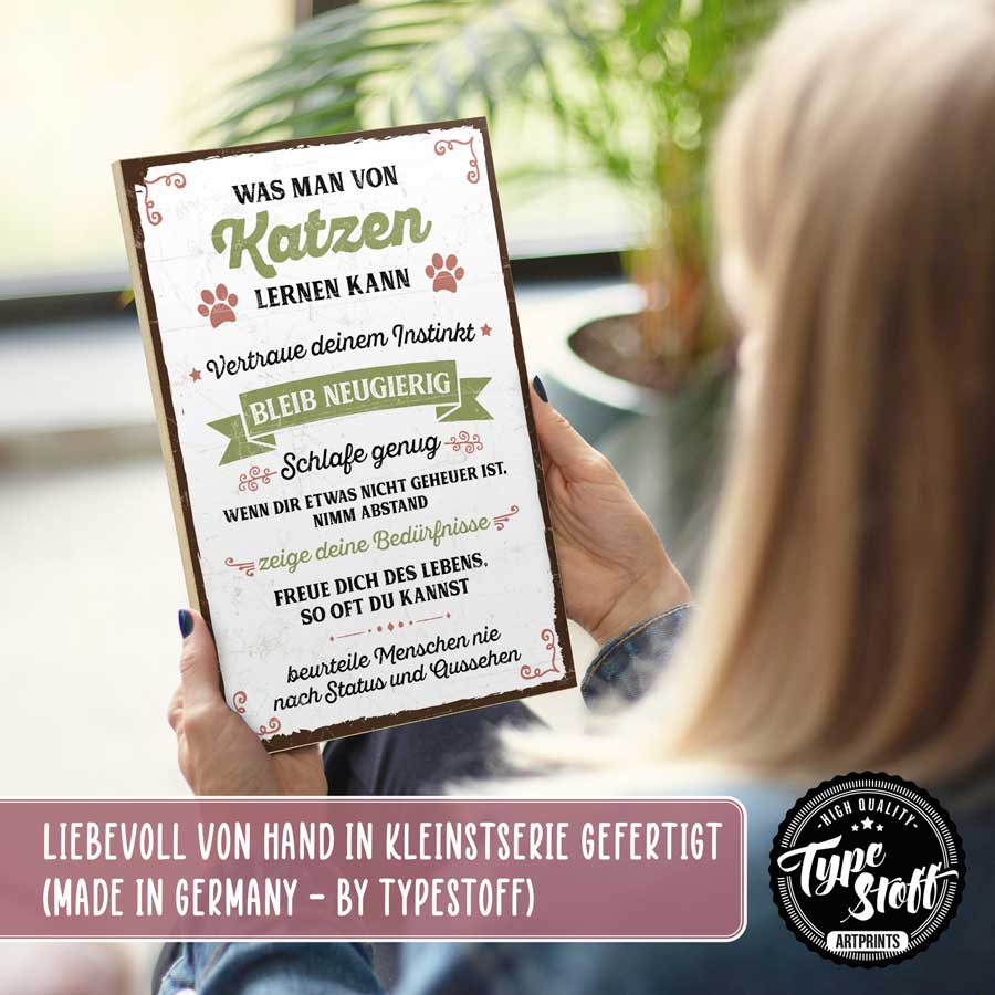 Holzschild mit Spruch - Was man von Katzen lernen kann – GH-01563