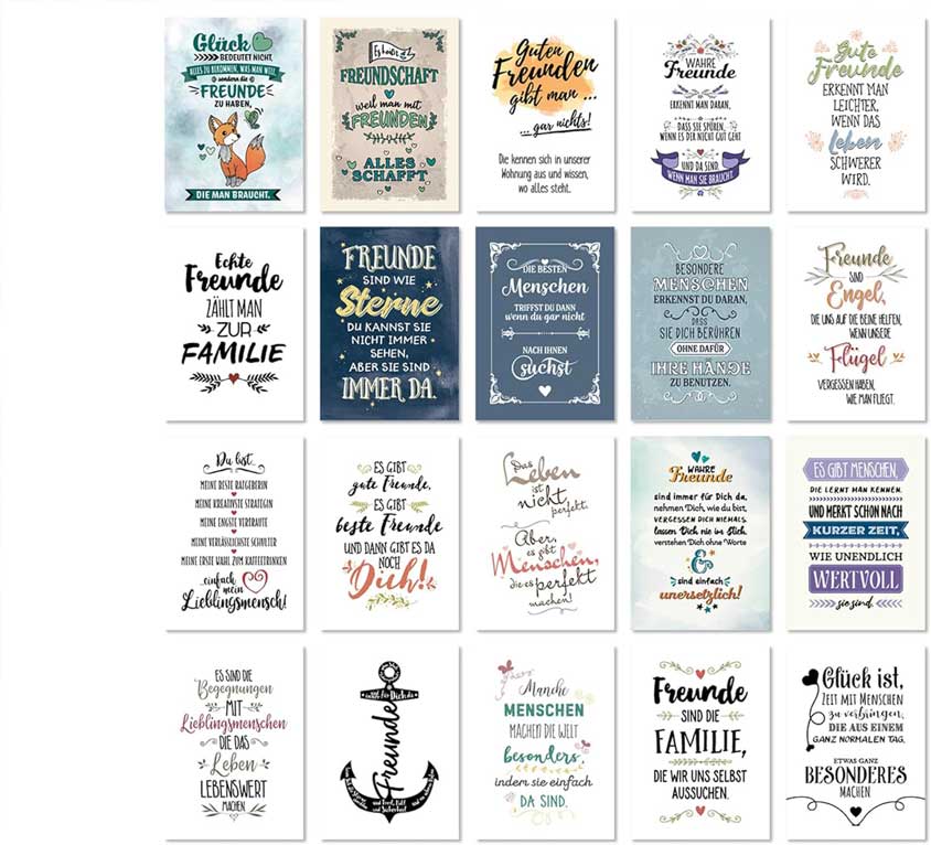 20er Spar-Set Postkarten mit liebevoll gestalteten Sprüchen, Zitaten und Aphorismen, für viele Gelegenheiten, in trendig-modernem Design.